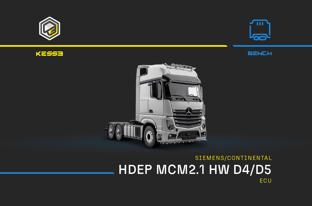 KESS3 erweitert die Einsatzmöglichkeiten bei europäischen Lkw mit einem neuen Protokoll für Mercedes-Benz Truck Fahrzeuge. Ab sofort ist es möglich, im BENCH-Modus am Steuergerät Continental HDEP MCM2.1 HW D4 und D5 zu arbeiten, das in OM-Motoren von 5,1L bis 15,6L ab Baujahr 2012 verbaut ist.