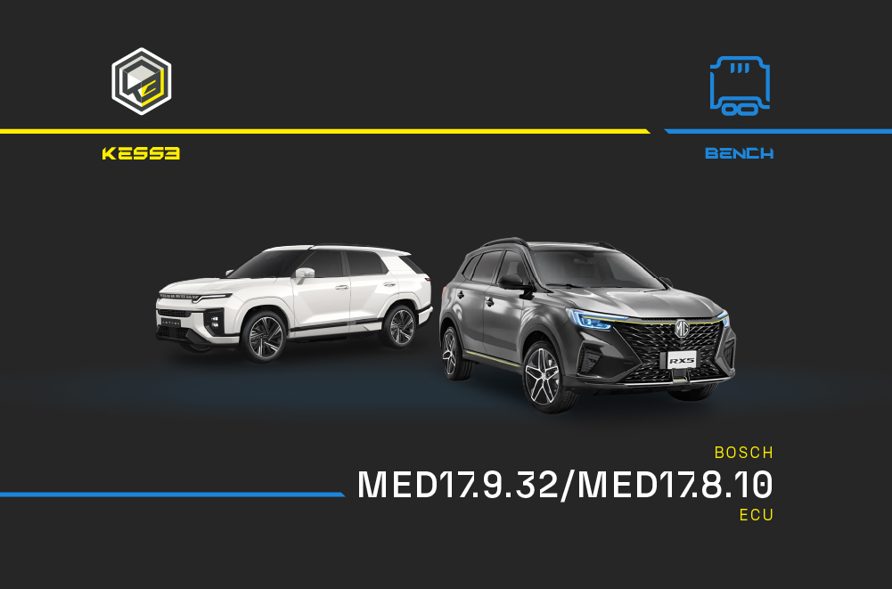 Mit diesem Update können Sie an den Bosch MED17.8.10 und MED17.9.32 Steuergeräten arbeiten, die in 1.5 TGI und 1.5/2.0 T-GDi Motoren verbaut sind, produziert ab 2020. Ein strategisches Upgrade für Ihre Werkstatt: Diese Modelle nehmen einen wachsenden Anteil am asiatischen Markt ein, insbesondere im SUV- und Crossover-Segment. Der BENCH-Modus ermöglicht das Lesen und Schreiben des Steuergeräts ohne Öffnung – schnell, sicher und effizient – für ein optimales Management der neuen Generation von Direkteinspritz-Turbobenzinmotoren. Ein Update, das Ihre Wettbewerbsfähigkeit stärkt: mehr unterstützte Fahrzeuge, mehr Arbeitsmöglichkeiten, mehr Wert für Ihre Kunden. Technischer Fokus Anschluss: BENCH ECU: Bosch MED17.8.10, Bosch MED17.9.32 Produktionsjahre: ab 2020 Marken: MG, KGM, SsangYong Unterstützte Fahrzeuge MG RX5, MG6 KGM Actyon, Tivoli, Torres SsangYong Tivoli, Torres, Korando, Musso, Rexton